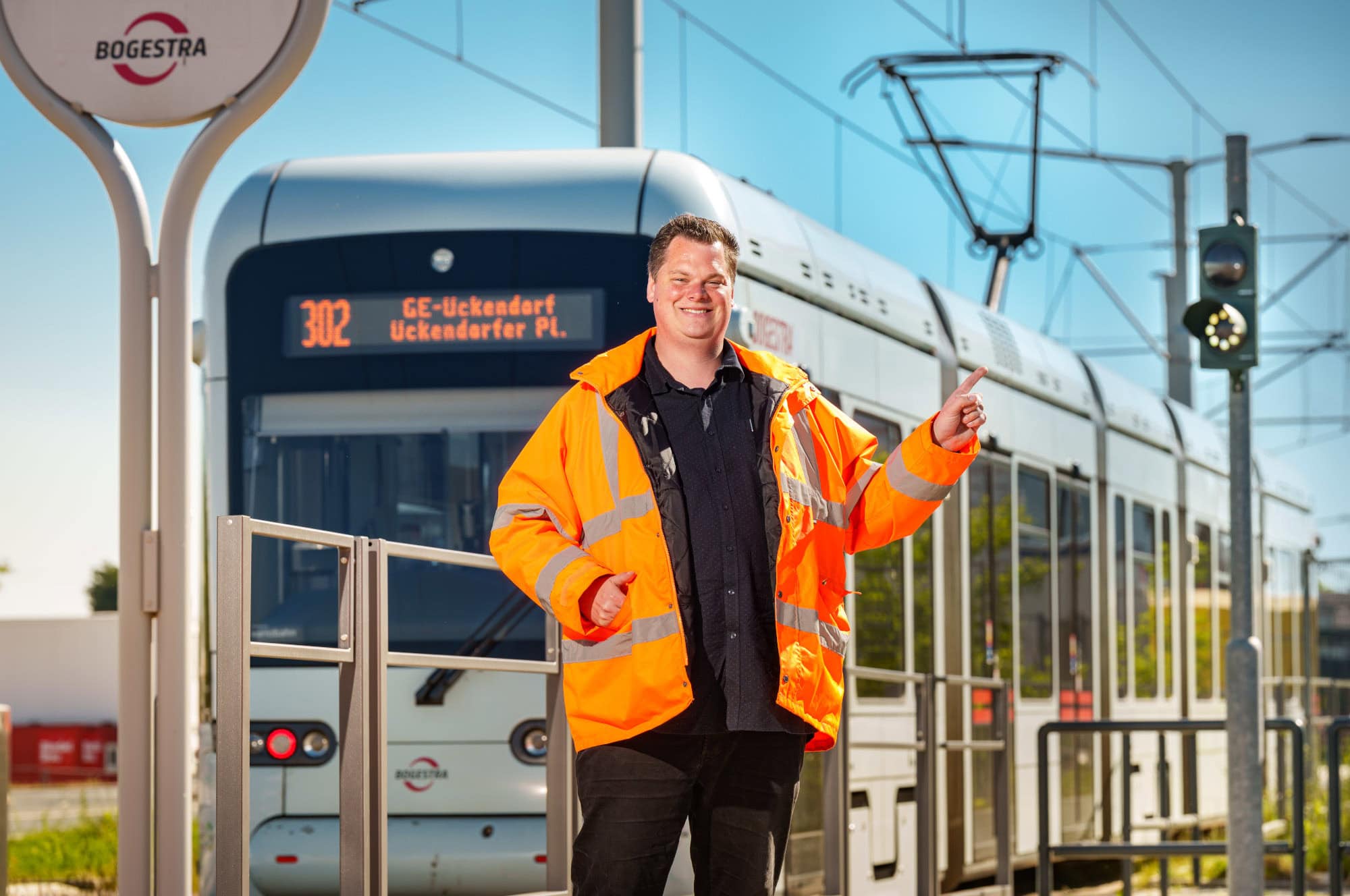 „Für dieses Signal waren verschiedene Abstimmungen nötig, schließlich muss alles zusammenpassen: Der Abfahrtszeitpunkt, die passende Geschwindigkeit für die Strecke und die direkte Signalisierung an der Kreuzung. Da haben uns die Kolleg*innen aus dem Fahrdienst wichtige Hinweise gegeben“, ergänzt Fabian.